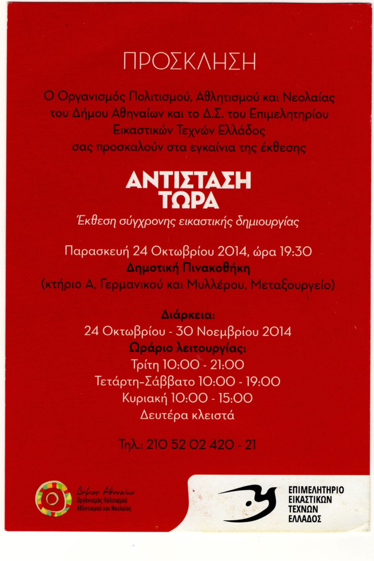 City of Athens Municipal Art Gallery, Athens, Greece, 24 October 2014 – 30 November 2014